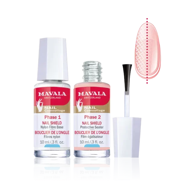¿Buscas una solución instantánea para fortalecer y proteger tus uñas frágiles o quebradizas? Nail Shield es la solución ideal. Esta fórmula bifásica crea una barrera mecánica robusta que protege tus uñas de golpes, grietas y astillas. Actúa como una armadura para tus uñas y ofrece protección inmediata a la vez que favorece su recuperación al combinarse con tratamientos de cuidado como MAVALA Scientifique K+, Mava-Flex o Nailactan.