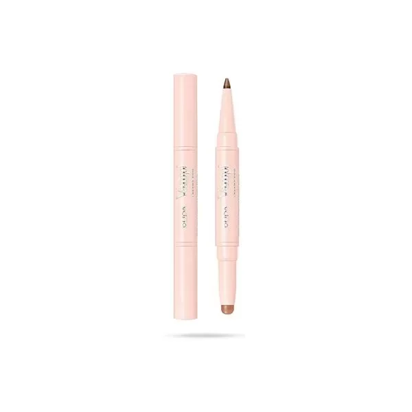 Un lápiz para definir y dar forma al contorno de los labios y un labial brillante y cremoso para que luzcan visiblemente más voluminosos.