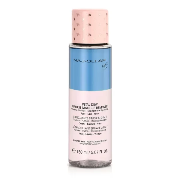 Desmaquillante bifásico 3 en 1: desmaquilla, purifica y fortalece las pestañas; Perfecto para eliminar el maquillaje pesado y resistente al agua* de forma rápida y suave.